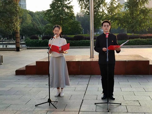 活动第二项,学院党委书记李红军作国旗下的讲话。他在发言中向同学们表达了殷切期望。第一、希望同学们胸怀天下,做有抱负、有担当的爱国青年;第二、希望同学们勤奋刻苦,做一名有毅力、有才华的青年。第三、希望同学们崇德修身,做一名有温度、有情怀的高尚青年。