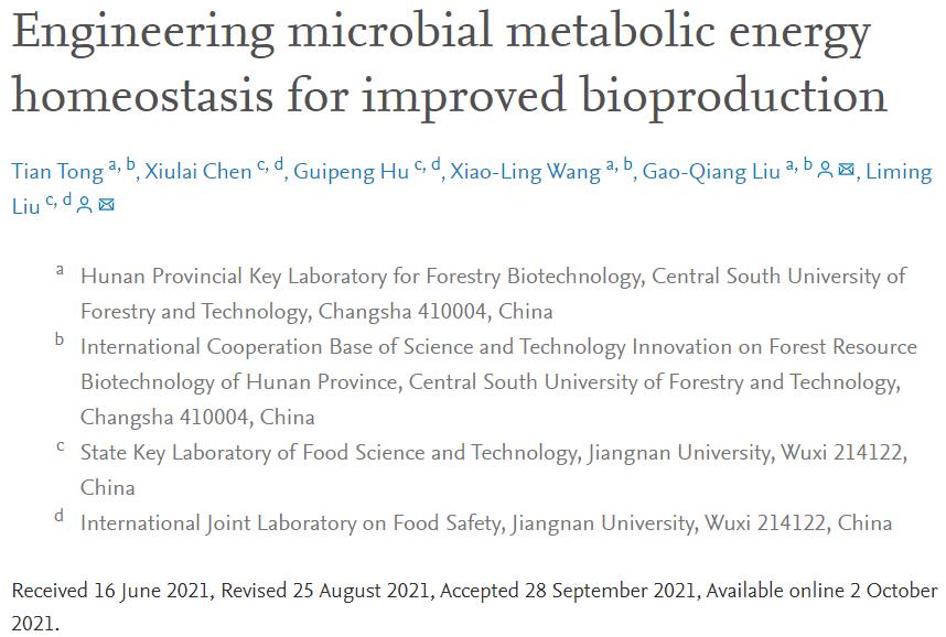 我院刘高强教授团队以“Engineering Microbial Metabolic Energy Homeostasis for Improved Bioproduction”为题,在国际知名期刊《Biotechnology Advances》(一区Top,IF 17.681)上发表代谢能平衡与微生物制造方面的综述观点论文。《Biotechnology Advances》期刊每年仅发表100多篇论文。