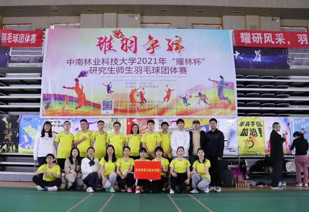 4月10日,由中南林业科技大学研究生工作部主办、我院承办的2021年“耀林杯”研究生师生羽毛球赛在体育馆成功举办。本次比赛采用小组循环积分制,来自16个学院的16支队伍报名参赛,我院羽毛球队经过两天紧张激烈的角逐,获得了季军的好成绩,女单选手夏琦获得了女单冠军。