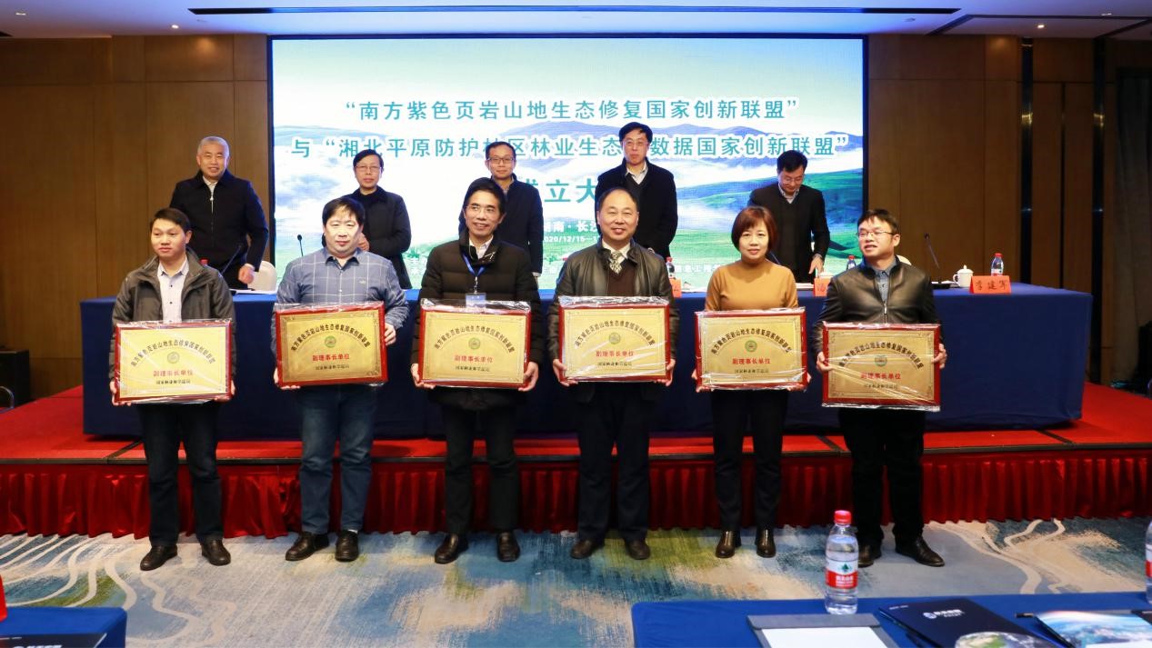2020年12月16日上午,我院南方紫色页岩山地生态修复国家创新联盟(以下简称联盟)成立大会在长沙顺利召开。湖南省科学技术厅二级巡视员刘铁兵、中南林业科技大学副校长朱道弘、省林业局二级调研员熊四清等领导出席会议并为国家创新联盟第一届理事单位授牌;来自各联盟成员单位代表共160人参加了本次会议。会议由中南林业科技大学科技处处长汤小红主持。