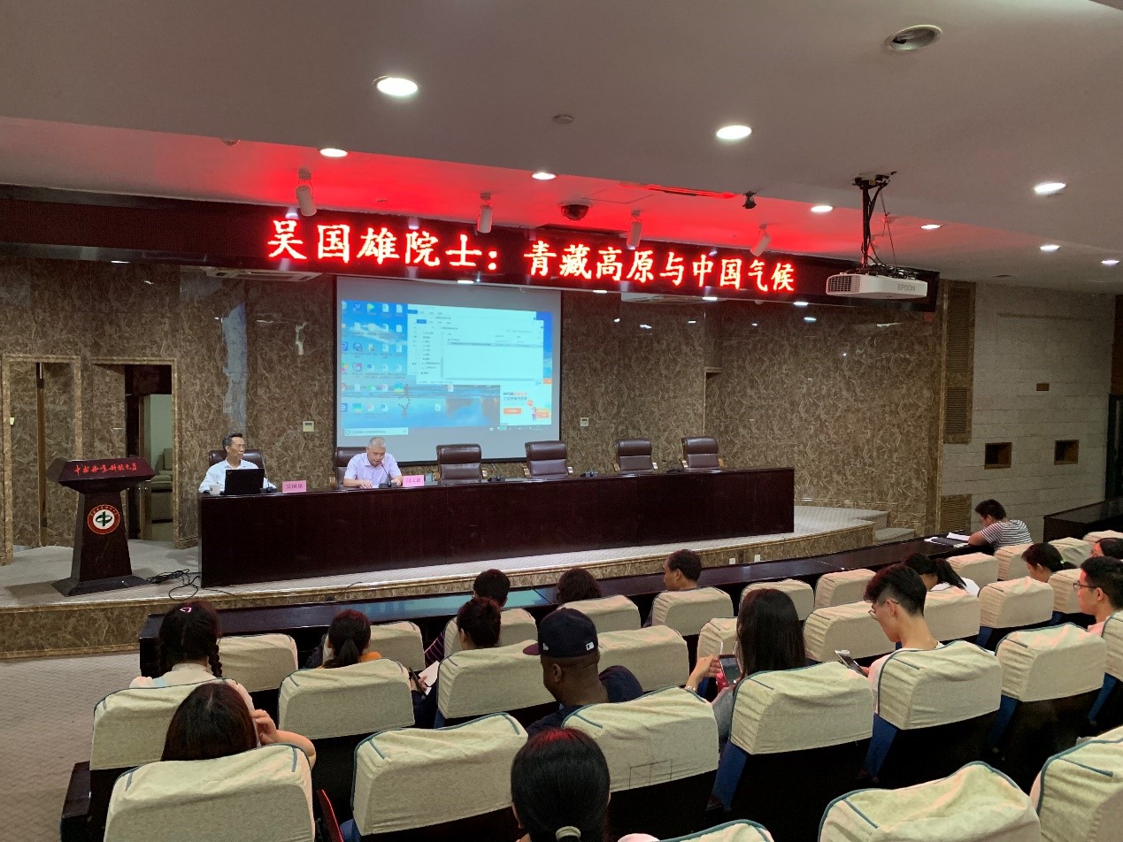 在报告中,吴国雄院士围绕着青藏高原与中国气候这一主题,用朴实的语言深入浅出的讲述了青藏高原的形成,其尺度、经度、纬度、高度、坡度等特征和“感热加热气泵”原理;青藏高原气象学的建立;青藏高原与亚洲季风爆发、强度之间的关系,以及如何影响我国气候等方面进行了详细解释,并深入浅出地介绍了青藏高原的前沿问题和未来发展趋势等。报告会结束后,参会师生踊跃提问,吴国雄院士也耐心地一一进行解答。