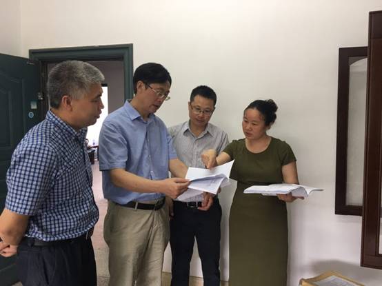 朱校长及检查组成员首先听取了闫文德院长关于学院近期评估的工作进展汇报并与大家就评估的相关问题展开了讨论。随后朱校长一行去学院资料室查阅了自评报告、支撑材料,抽查了考试试卷及毕业设计资料归档等材料,并考察了生物工程实验室。