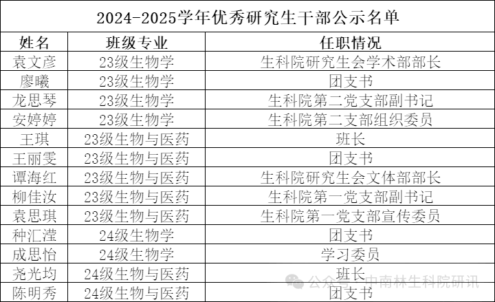 优秀研究生干部(13人)